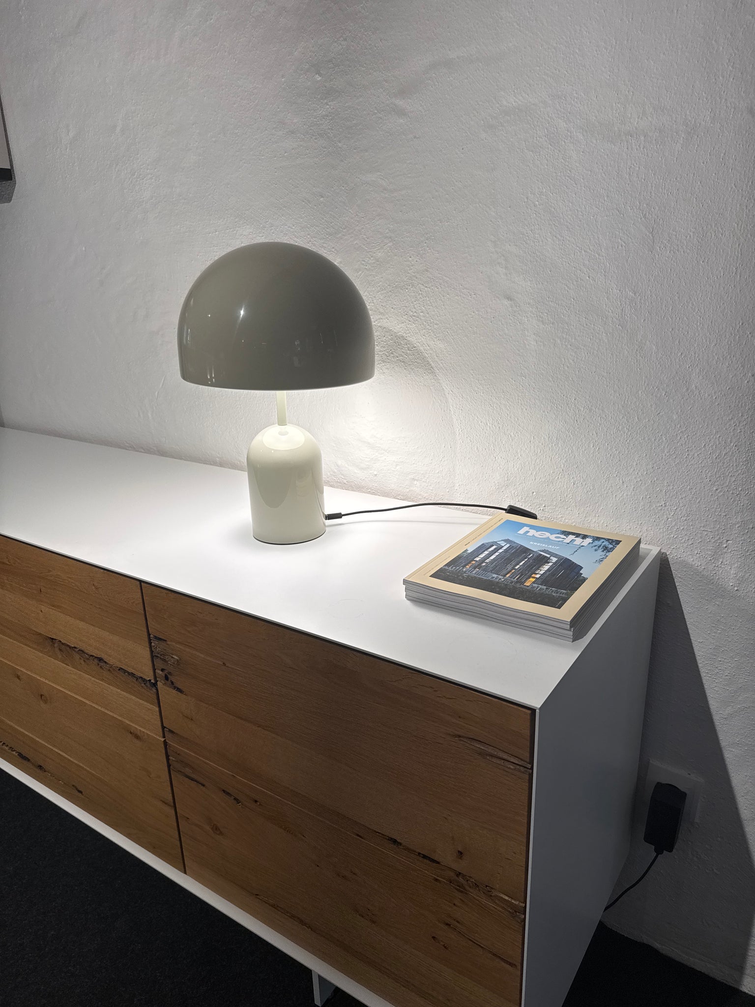 Die Bell Table Tischleuchte von Tom Dixon besticht durch ihr minimalistisches Design, inspiriert von klassischen Stoßstangen älterer Automobile. Gefertigt aus verchromtem, gepresstem Stahl, reflektiert sie ihre Umgebung und setzt subtile Akzente im Raum. Ein integrierter, versteckter Diffusor sorgt für ein angenehm weiches Licht. Ausgestattet mit einem energieeffizienten 3000K LED-Leuchtmittel bietet diese Leuchte eine warme, beruhigende Beleuchtung. Erhältlich in verschiedenen Farbvarianten, verbindet sie edles Design mit moderner Lichttechnologie für anspruchsvolle Wohn- und Arbeitsbereiche.