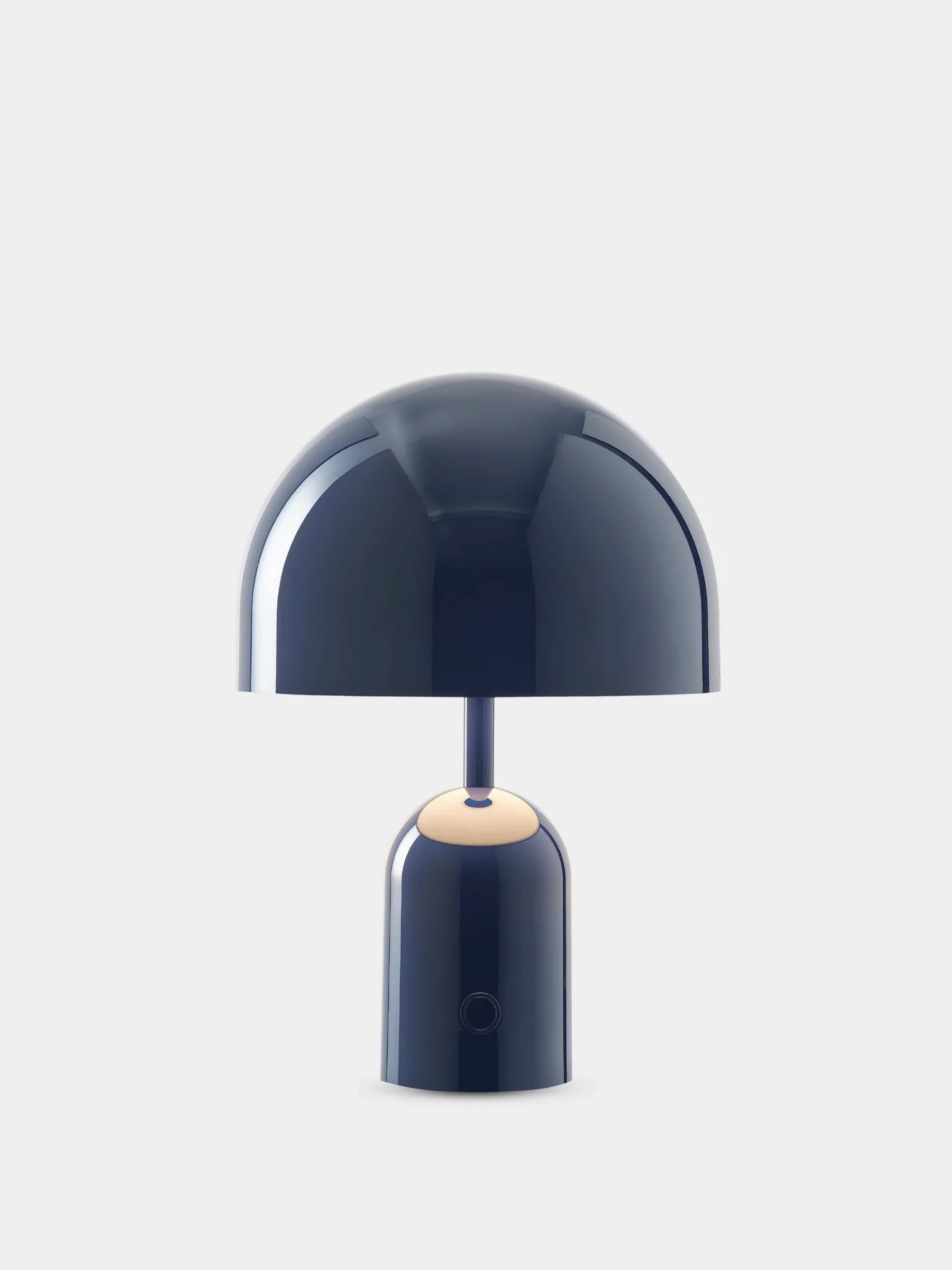 Die Akkuleuchte Bell von Tom Dixon verkörpert Reduktionismus auf höchstem Niveau. Sie besteht aus einer aufgehängten Halb-Kugel über einem zylindrischen Gehäuse, gefertigt aus plattiertem, gedrücktem Stahl. Diese Leuchten wurden präzise hergestellt, ohne sichtbare Befestigungen, und überzeugen mit einem minimalistischen Design.