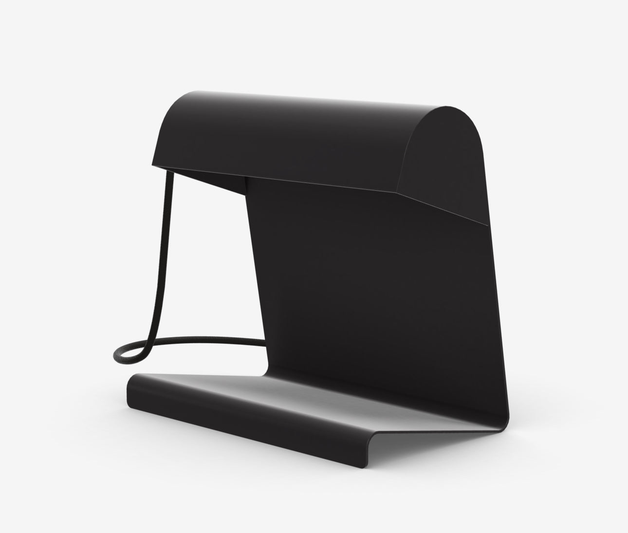 Jean Prouvé hat die kleine Tischleuchte Lampe de Bureau für die Ausstattung der Cité Universitaire de Nancy entworfen, wo sie in den funktionalen Studentenzimmern verwendet wurde. Aus Stahlblech gefaltet, wirft sie einen angenehmen Lichtstrahl auf die Tischfl äche. Das pulverbeschichtete Stahlblech ist in unterschiedlichen Farben erhältlich, die sich an den von Prouvé verwendeten Originalfarben orientieren und das Stromkabel ist aus hochwertigem Textil.